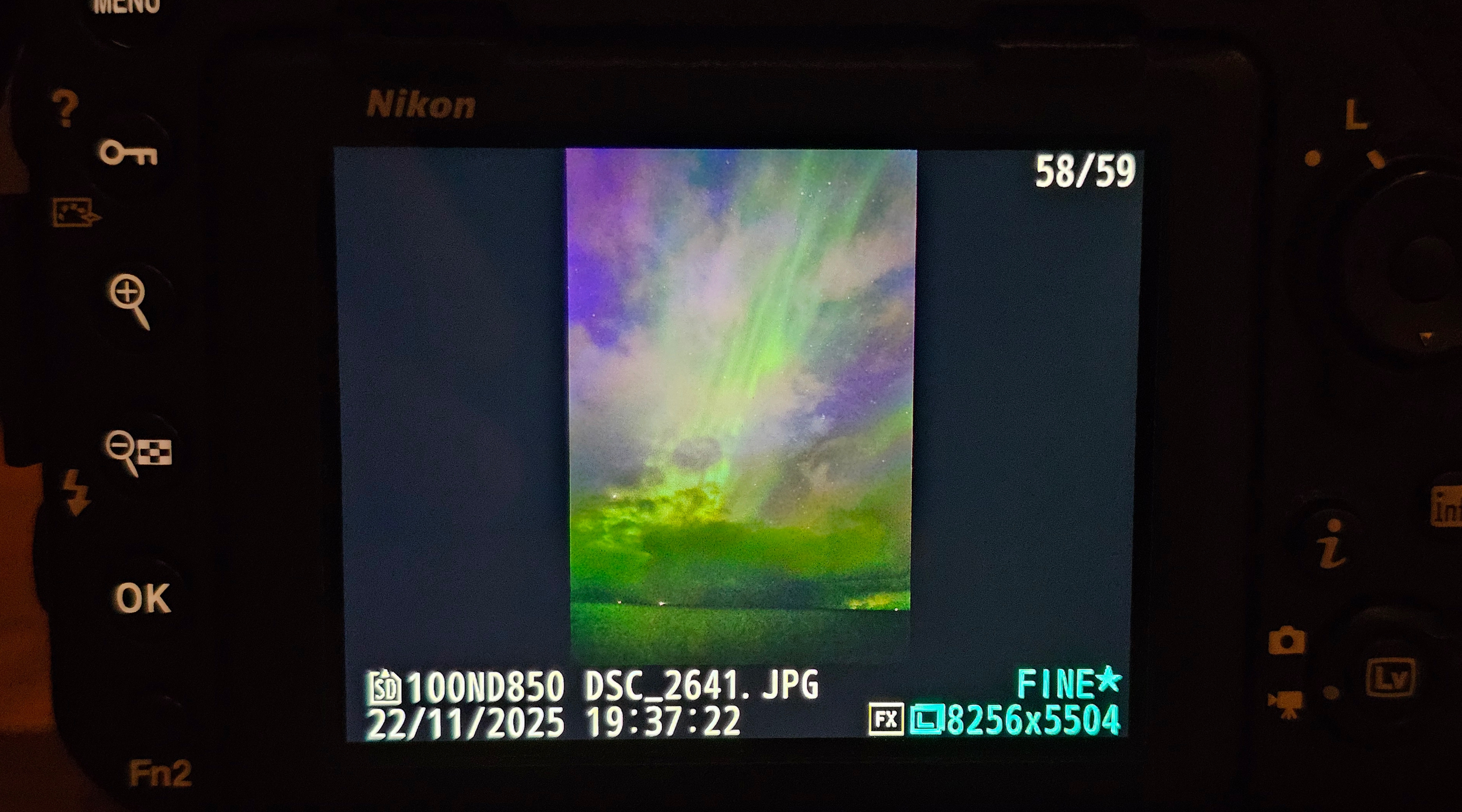 Aurora Borealis on camera display (November 22, 2025)